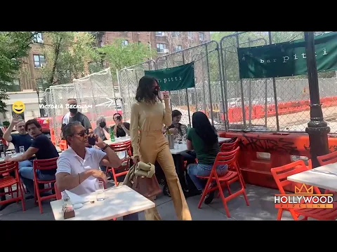 Victoria Beckham and David Beckham turn heads as they arrive for lunch at Bar Pitti in New York City. The twosome garnered the attention of restaurant customers and employees who looked in complete awe as they walked by.